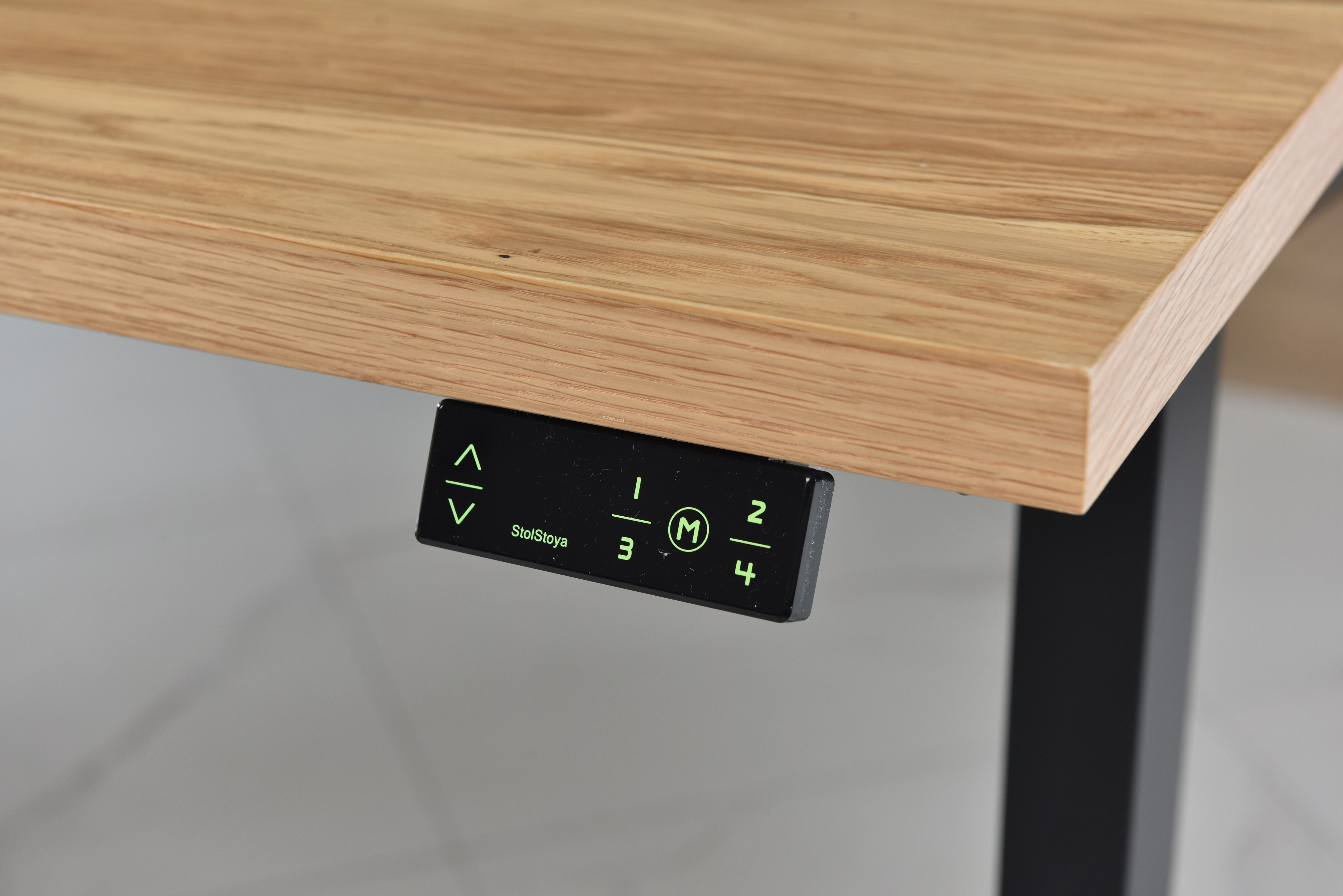Электропривод управляется с помощью удобного пульта с 4 ячейками памяти: можно сохранить любимые положения для работы сидя, стоя и, при необходимости, промежуточный режим. Расширенные функции безопасности (защита от перегрева, антиколлизия, защита от детей, настройка чувствительности и параметров движения) делают работу за столом безопасной и комфортной.