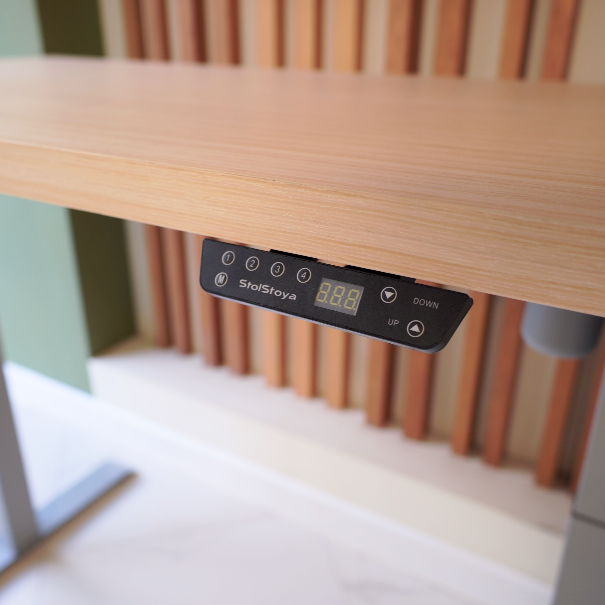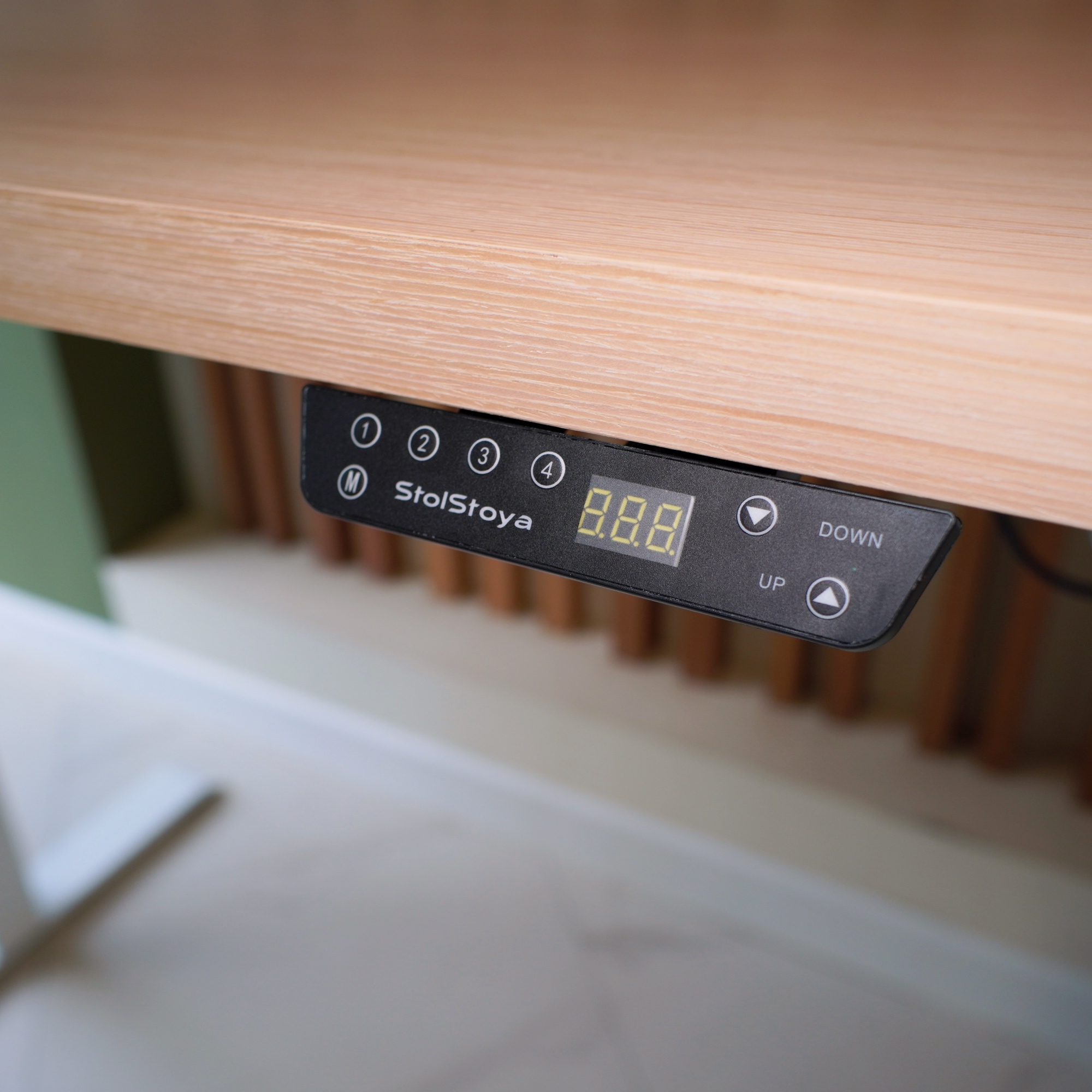 Регулируемый стол Motor UP с электроприводом и столешницей из МДФ, дуб беленый (натуральный шпон).