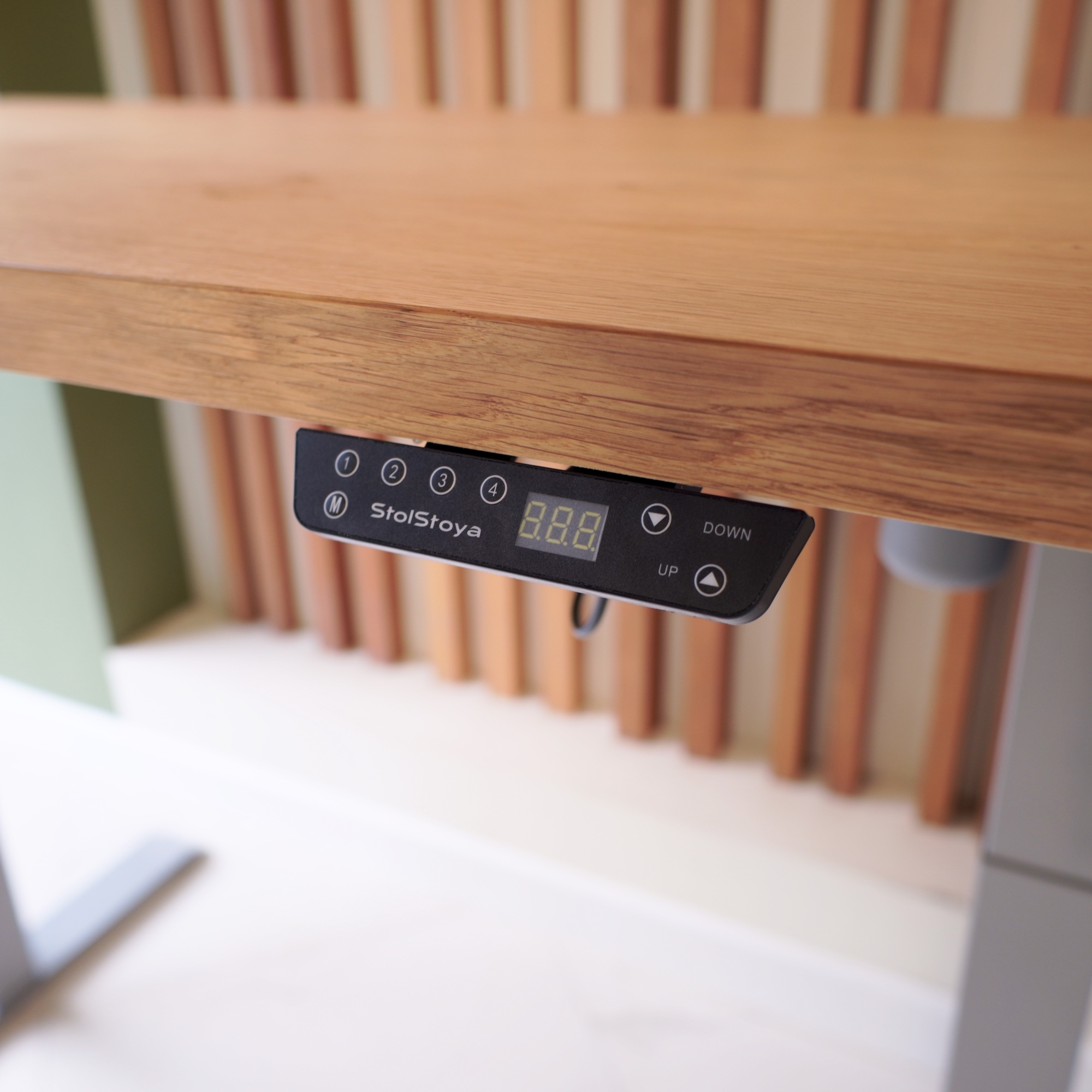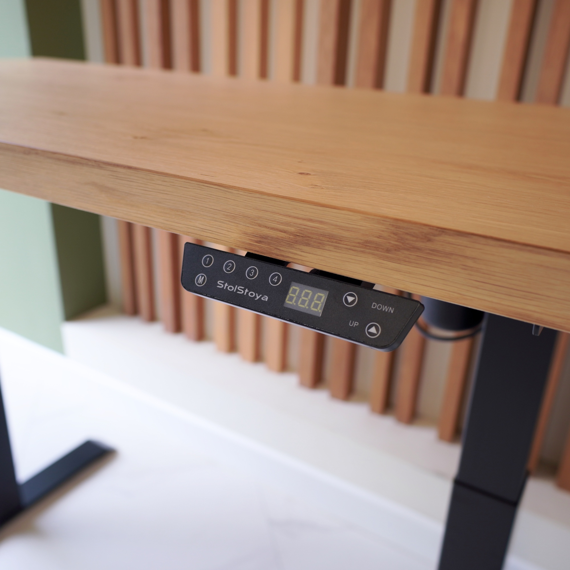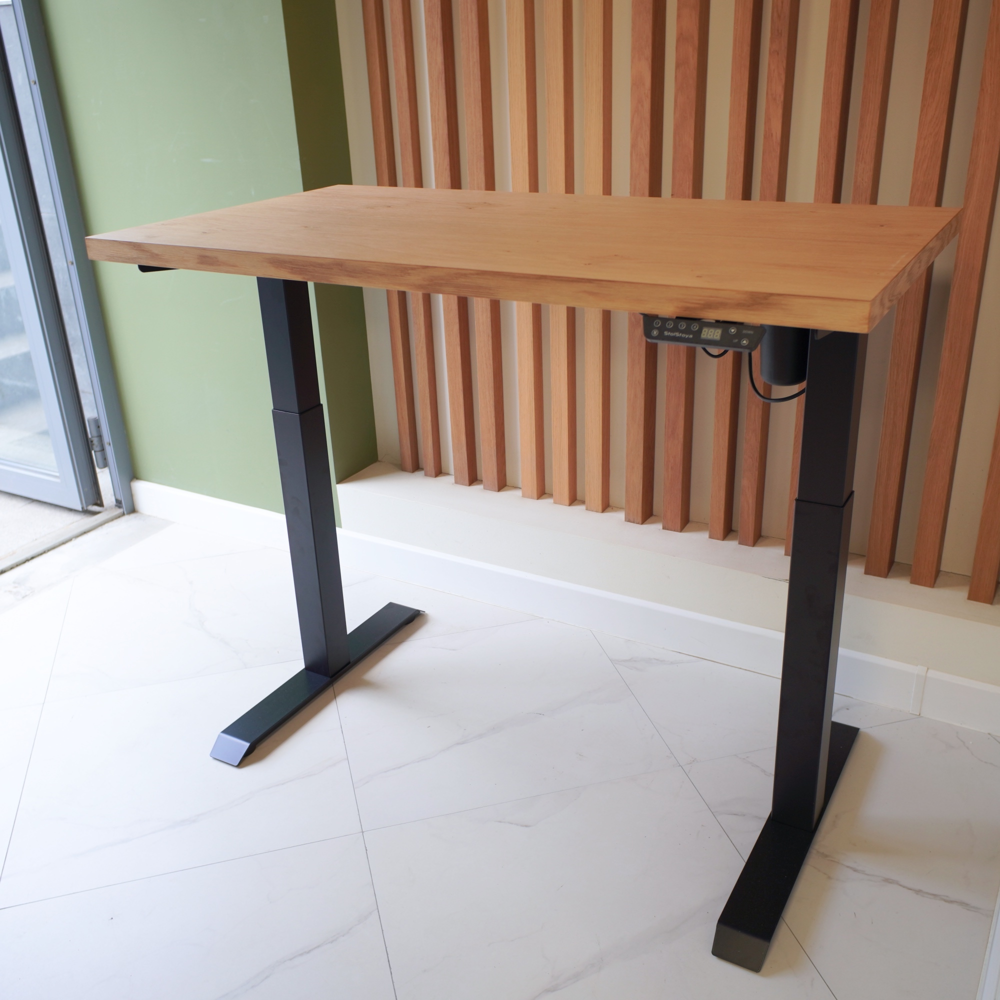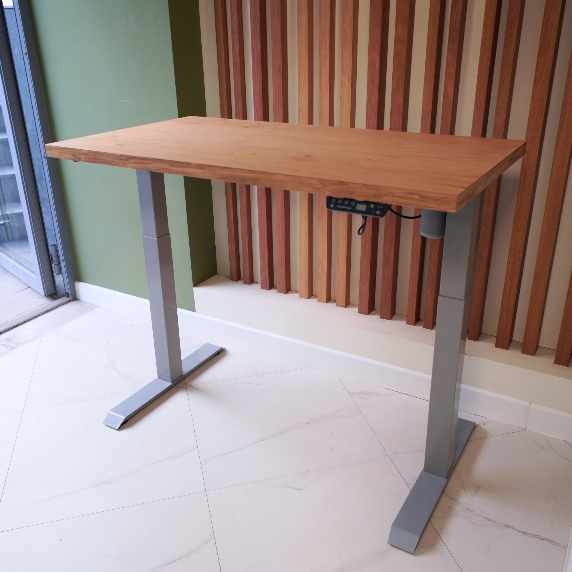 Регулируемый стол Motor UP с электроприводом и столешницей из МДФ, дуб европейский (натуральный шпон).