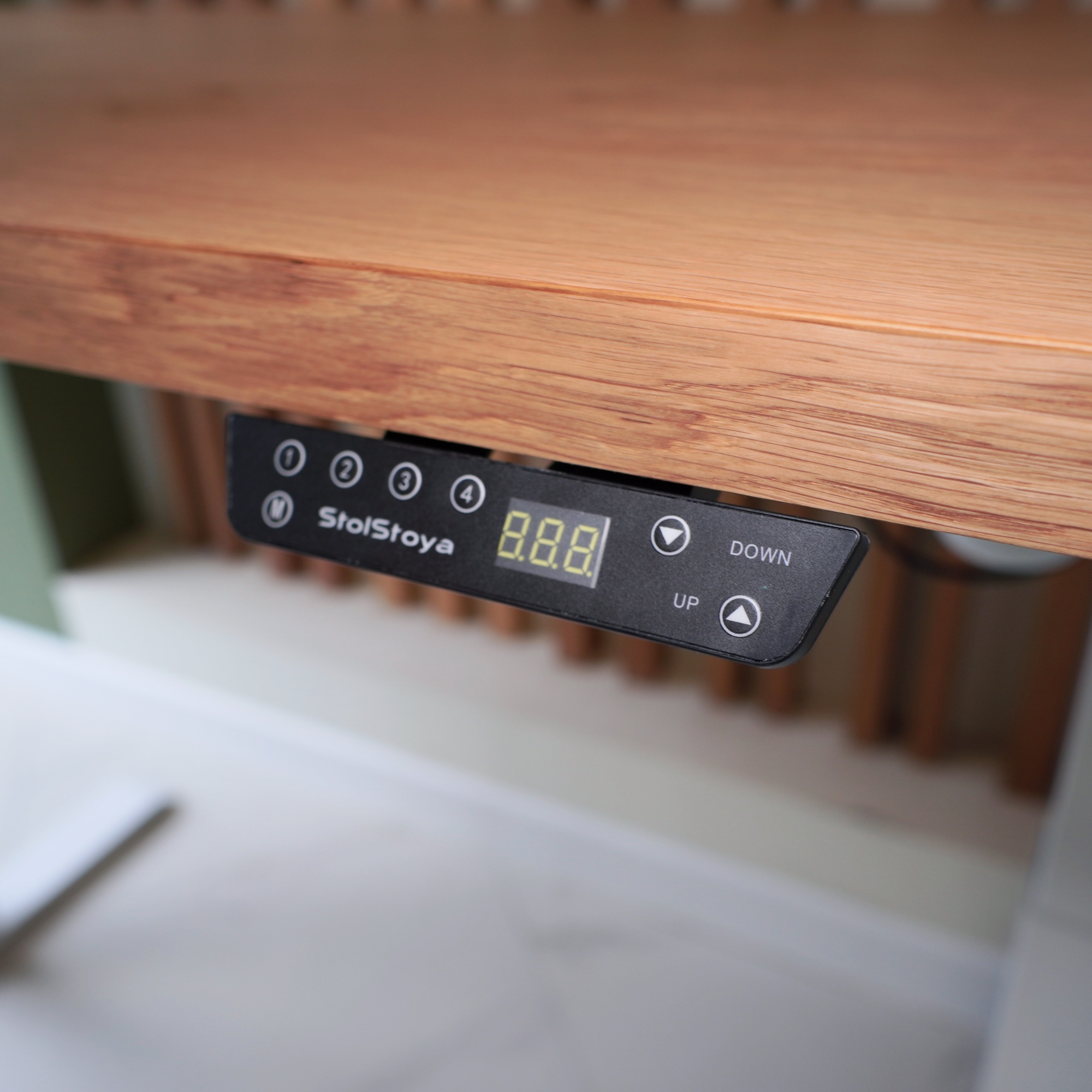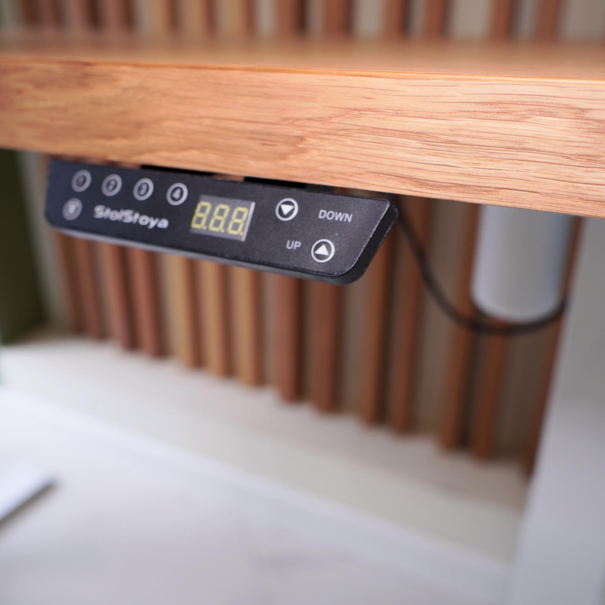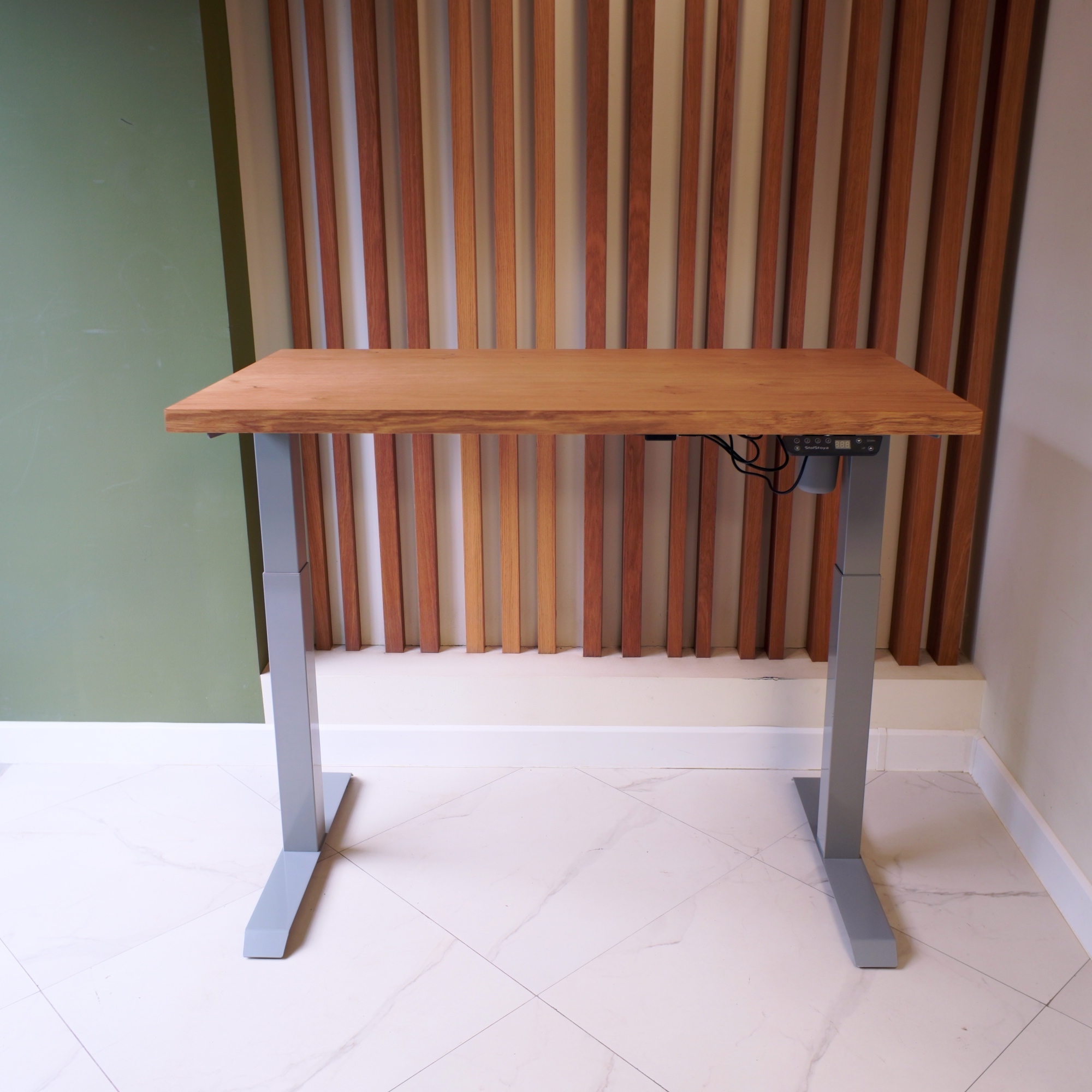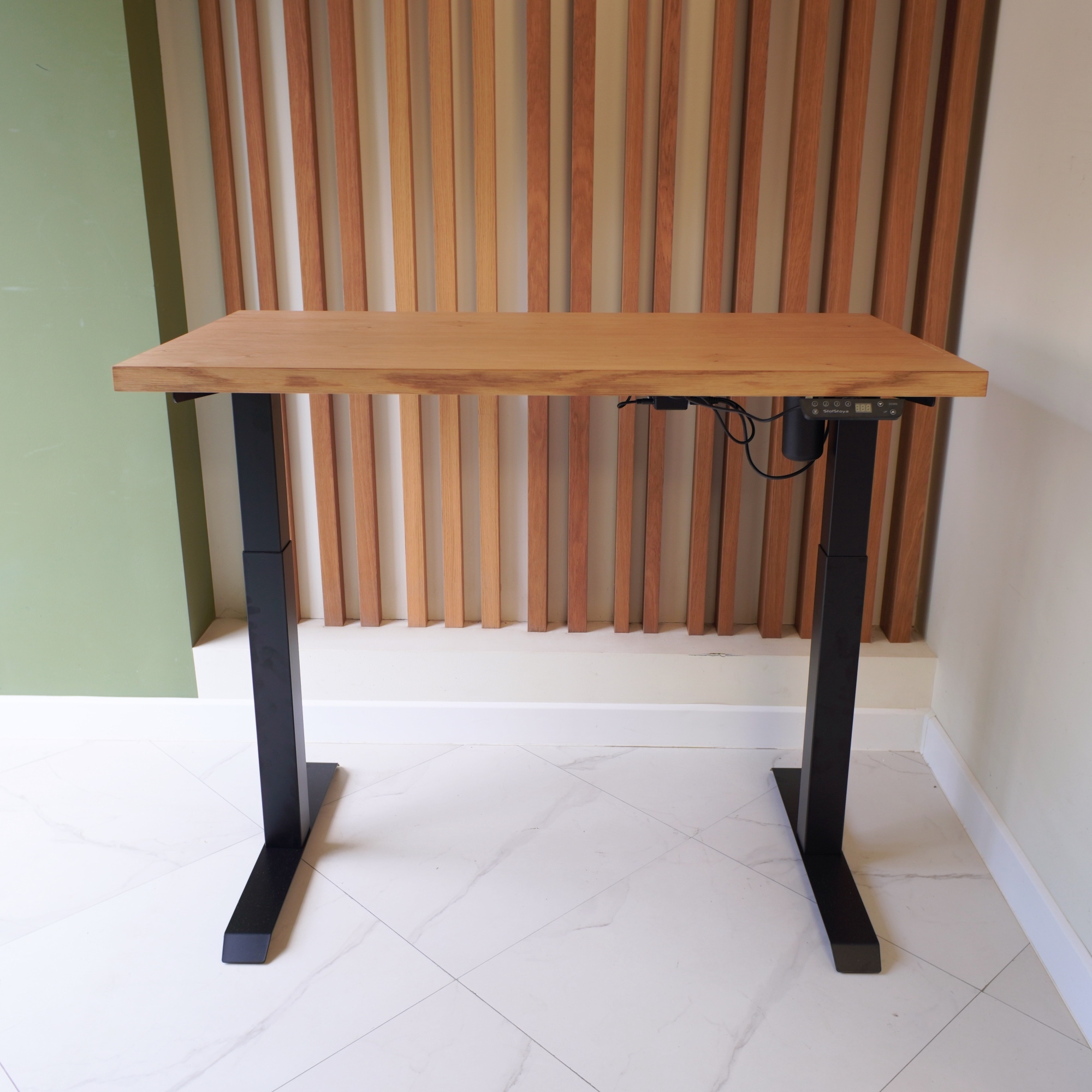 Регулируемый стол Motor UP с электроприводом и столешницей из МДФ, дуб европейский (натуральный шпон).