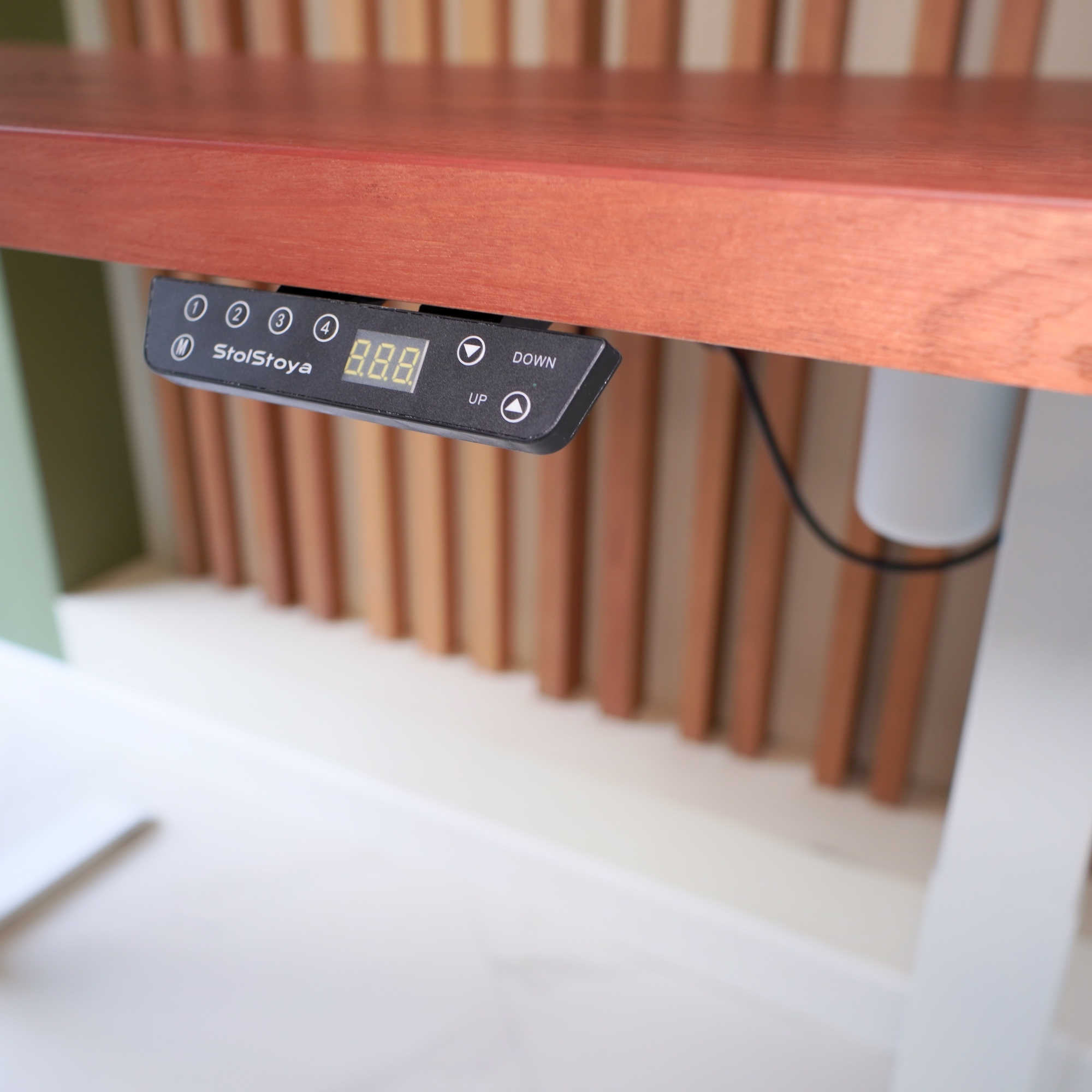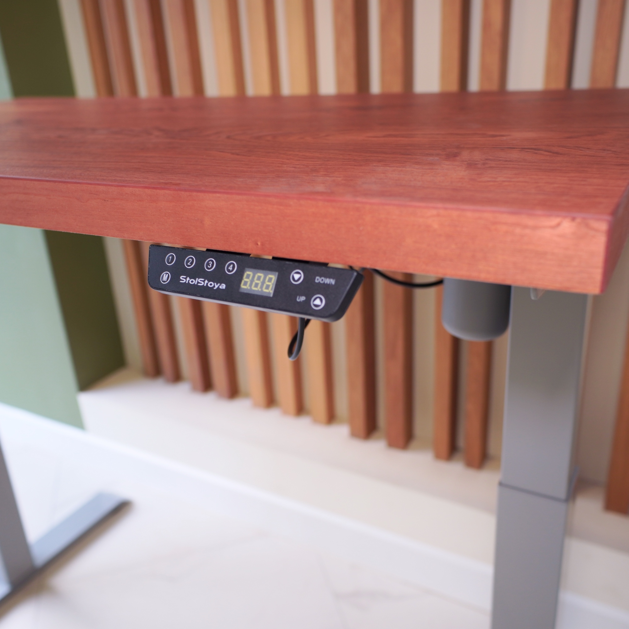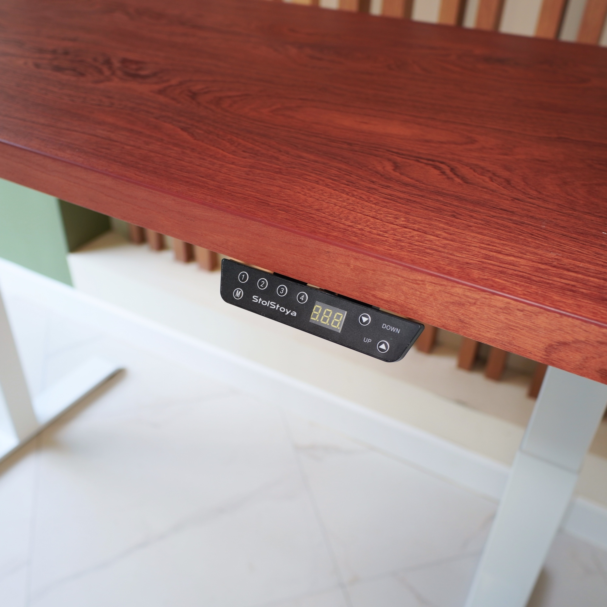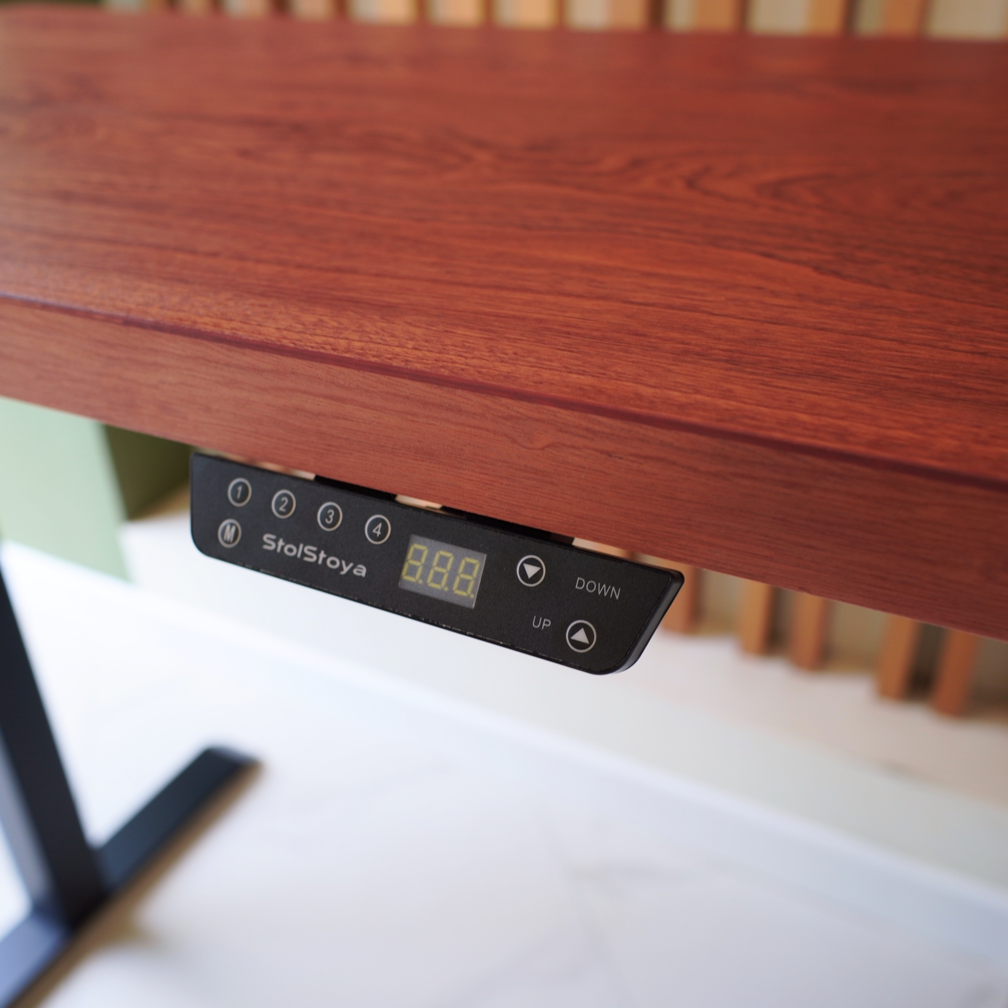 Регулируемый стол Motor UP с электроприводом и столешницей из МДФ, красное дерево (натуральный шпон).
