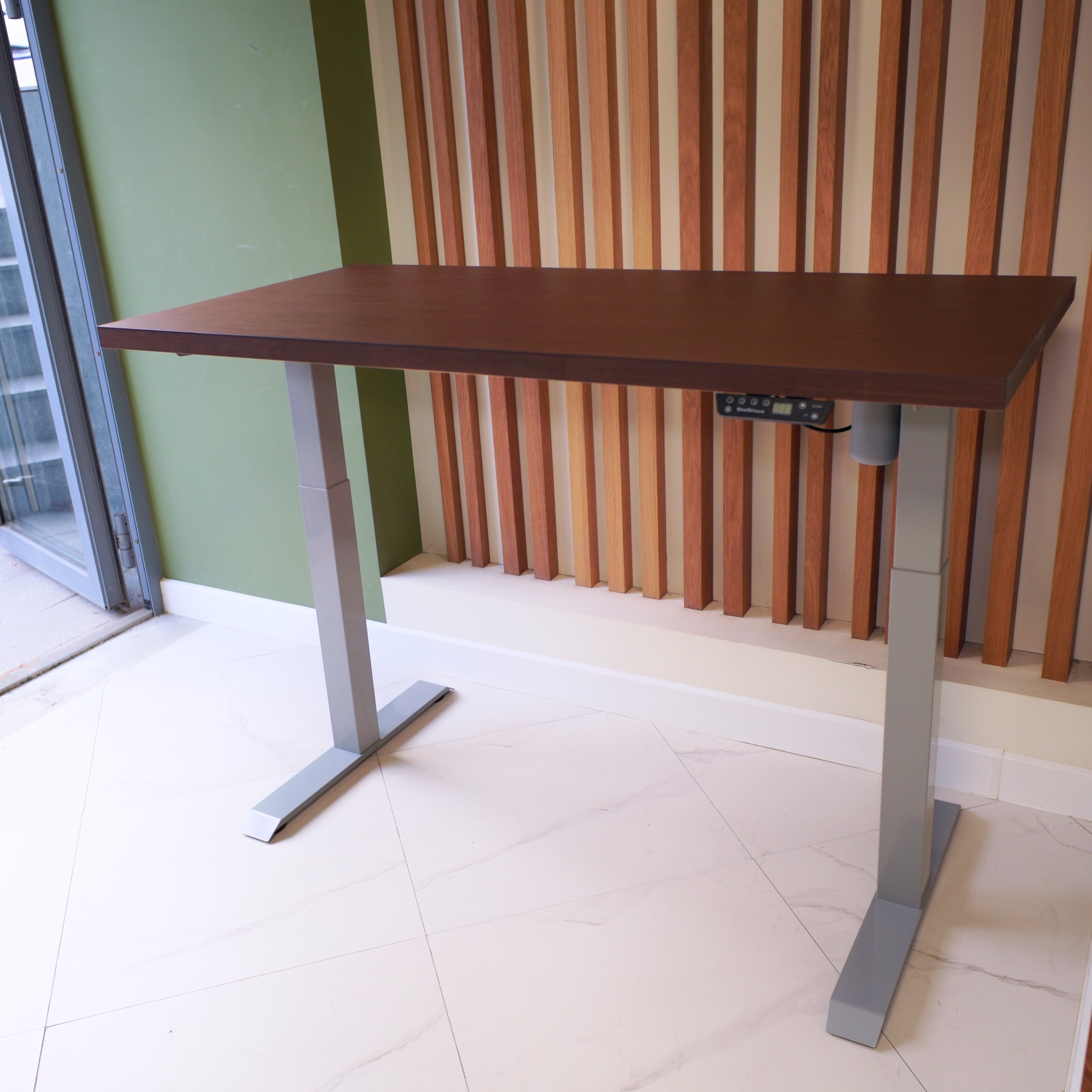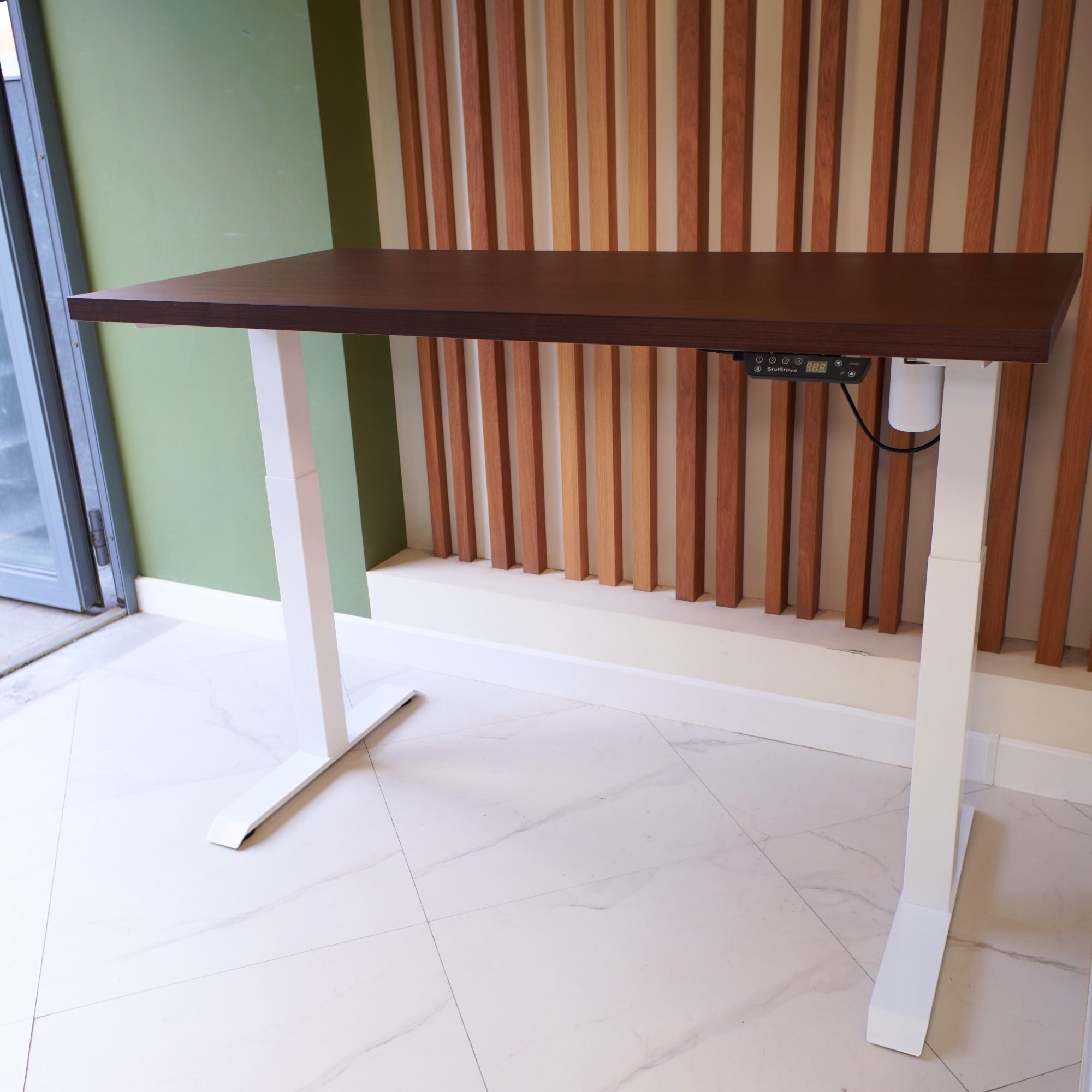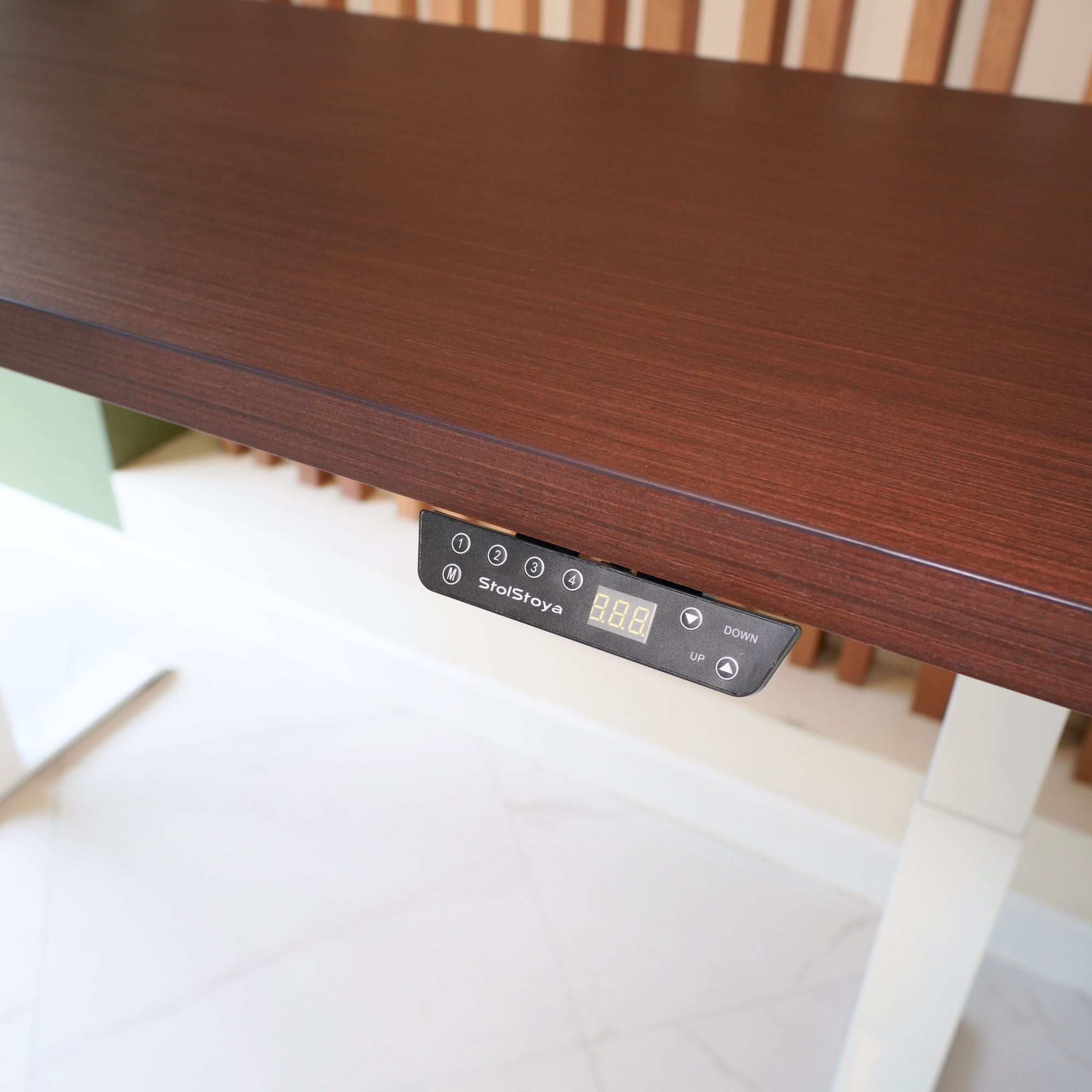 Регулируемый стол Motor UP с электроприводом и столешницей из МДФ, венге (натуральный шпон).