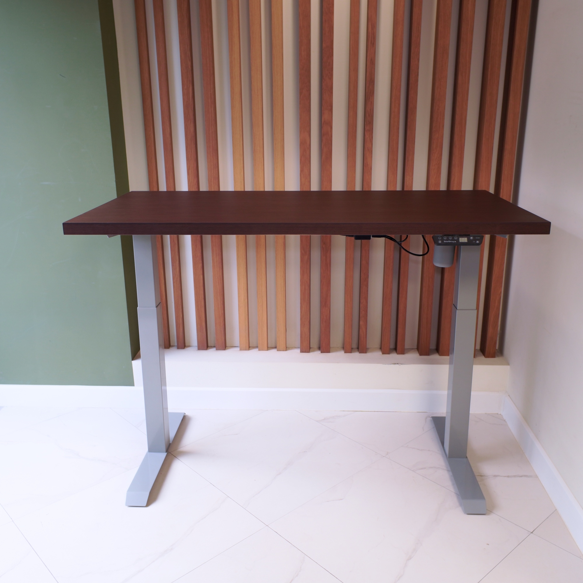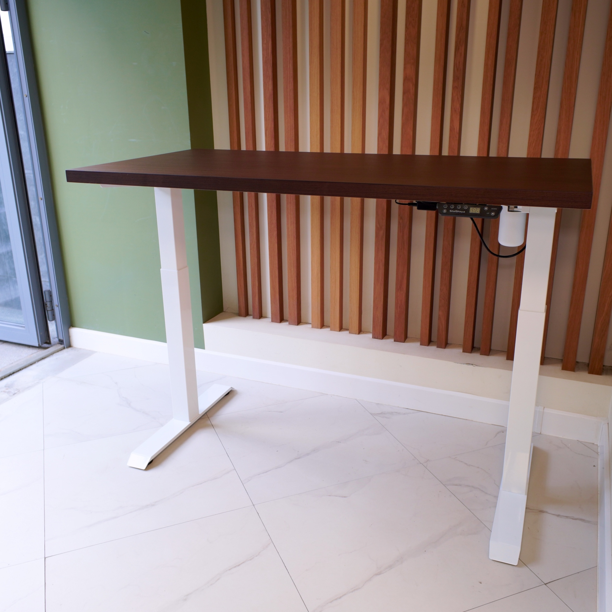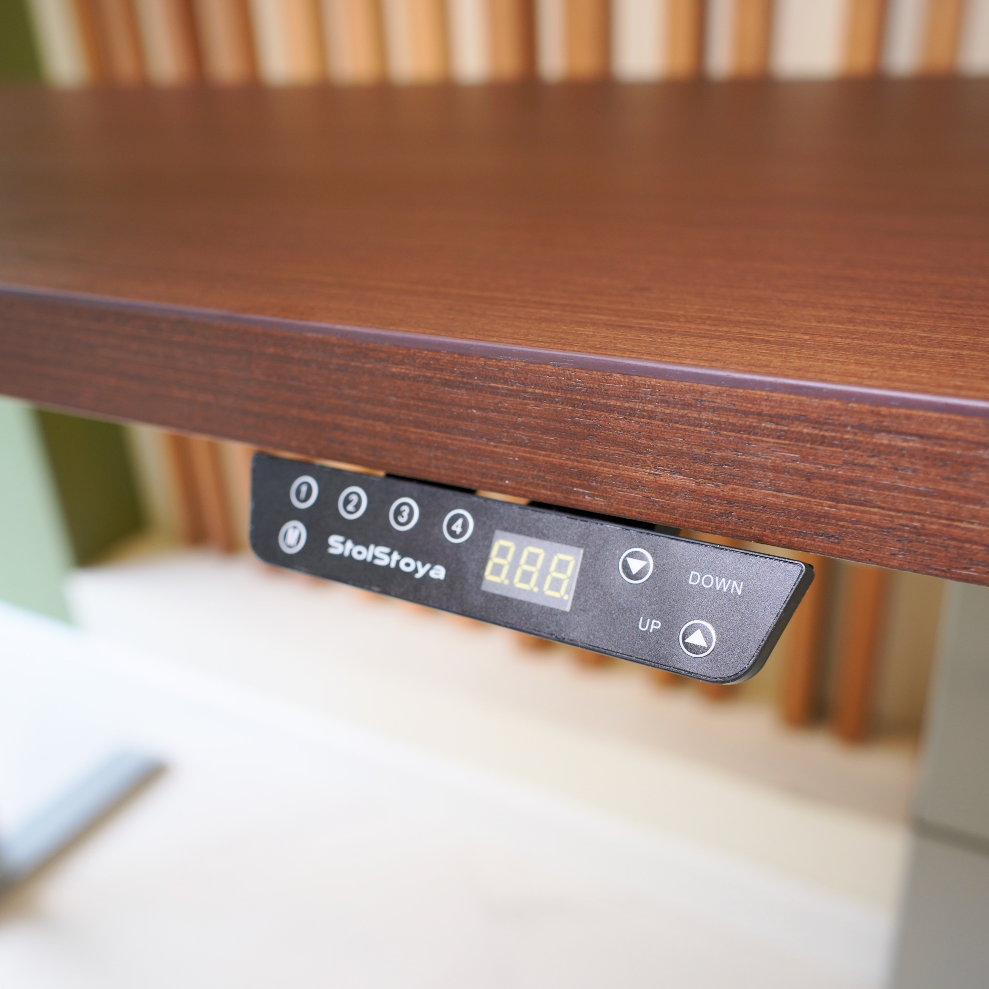 Регулируемый стол Motor UP с электроприводом и столешницей из МДФ, венге (натуральный шпон).